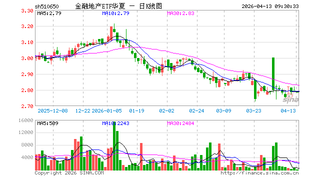 4月13日,金融地产ETF华夏(510650)开盘跌0.46%,报2.786元。金融地产ETF华夏(510650)重仓股方面,中国平安开盘跌1.05%,招商银行跌0.20%,兴业银行跌0.11%,中信证券跌1.08%,工商银行涨0.00%,国泰海通跌1.05%,农业银行涨0.15%,交通银行涨0.15%,浦发银行跌0.20%,江苏银行跌0.09%。